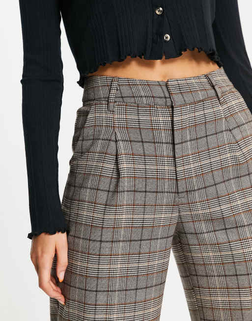 Bershka - Broek met wijde pijpen in bruin met ruiten