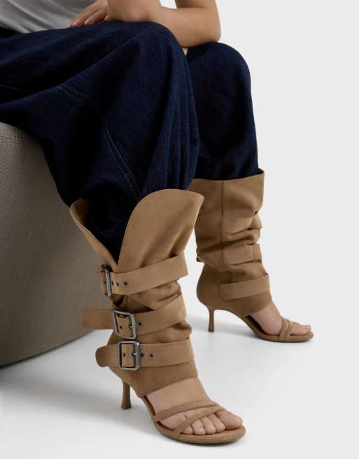 Bershka - Broeksandalen met hak en gespen in beige