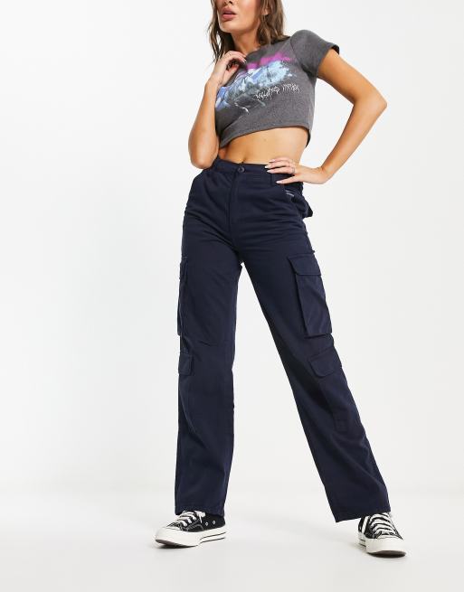 Bershka - Cargobroek met meerdere zakken in marineblauw