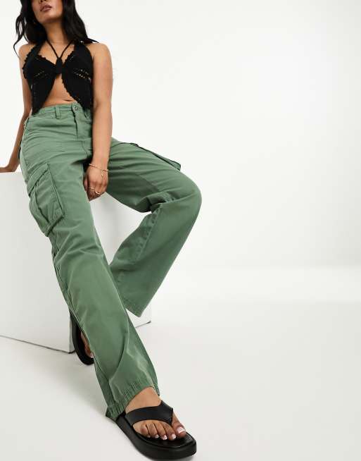 Bershka - Cargobroek met rechte pijpen in kaki