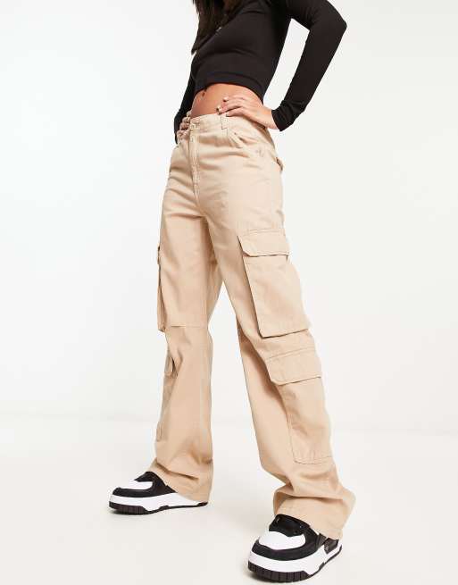 Bershka - Cargobroek met trekkoord in de taille in camel