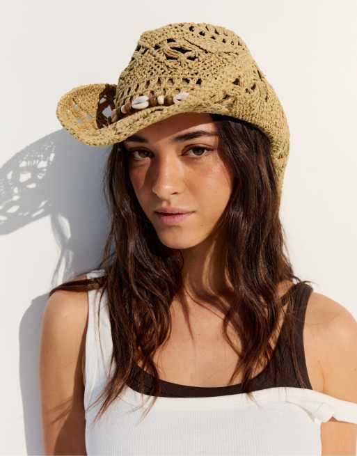Bershka - Cowboyhoed met schelpen in lichtbruin