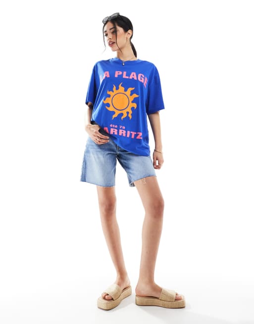 Bershka - Denim bermuda shorts in middenblauw