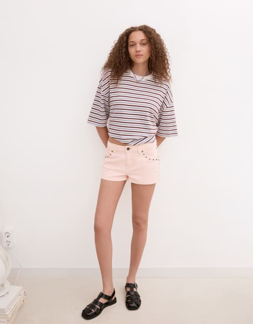 Bershka - Denim shorts met studs in roze