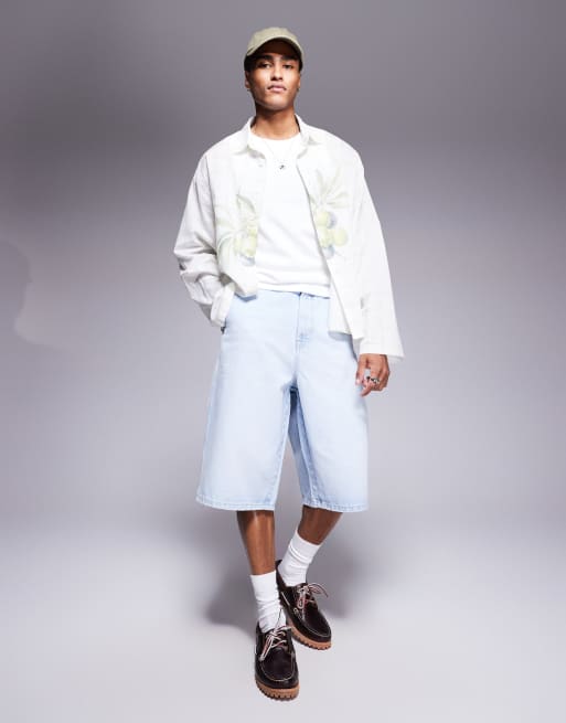 Bershka - Denim skater-bermudashort in lichtblauw