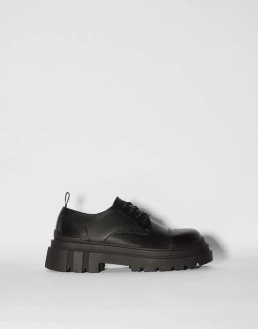 Bershka - Derby schoenen met dikke zool en teenstuk in zwart