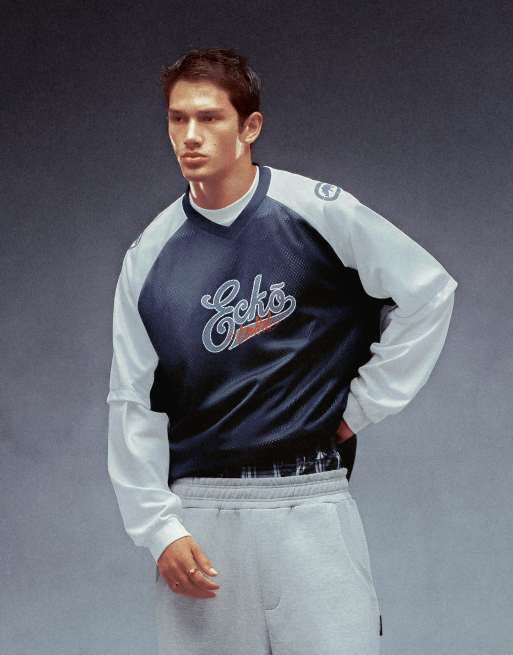Bershka - Ecko Unltd - Sport T-shirt van mesh in denim blauw
