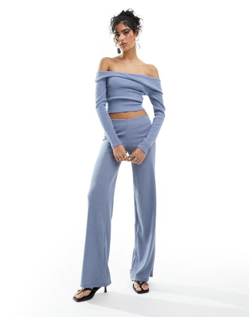 Bershka - Flare-broek van kreukelstof in blauw, deel van co-ord set