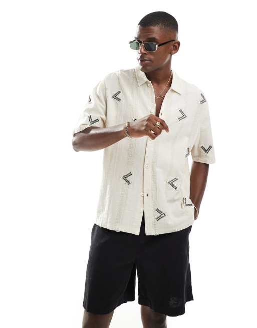 Bershka - Geborduurd linnenrijk overhemd in beige