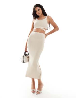 Bershka - Gebreide maxi rok in zandkleur, deel van co-ord set