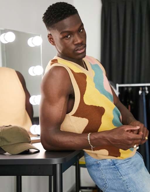 Bershka - Gebreide spencer met jaren 70 print in multi
