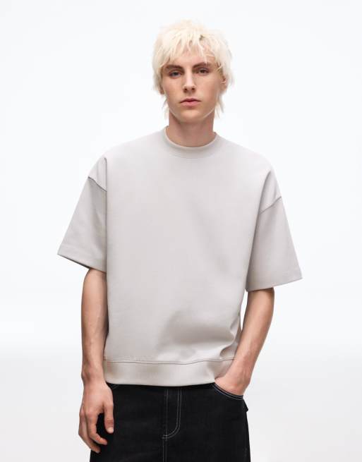 Bershka - Geribbeld sweatshirt met korte mouwen in grijs