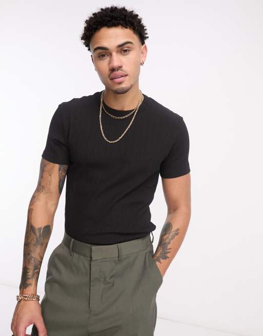 Bershka - Geribbeld T-shirt in zwart