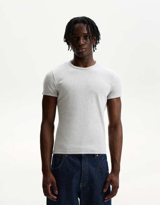 Bershka - Geribbeld T-shirt met korte mouwen in grijs
