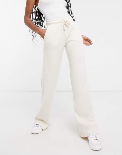 Bershka - Geribbelde broek met wijde pijpen in écru