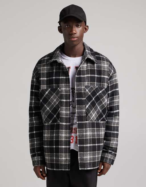Bershka - Geruit overshirt in zwart