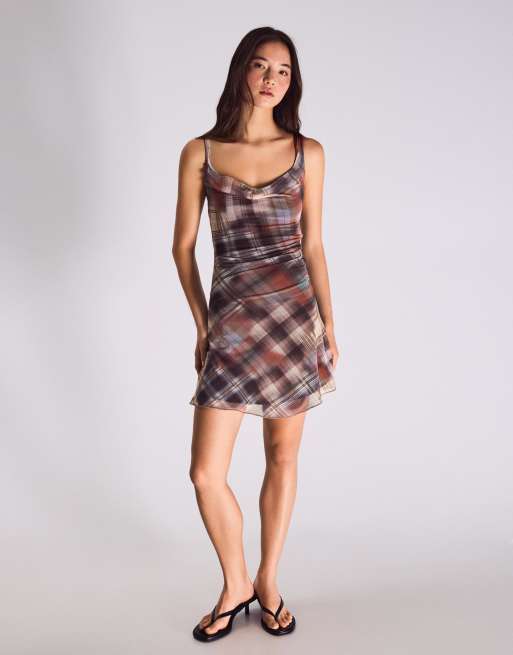 Bershka - Geruite mini jurk van tule in bruin
