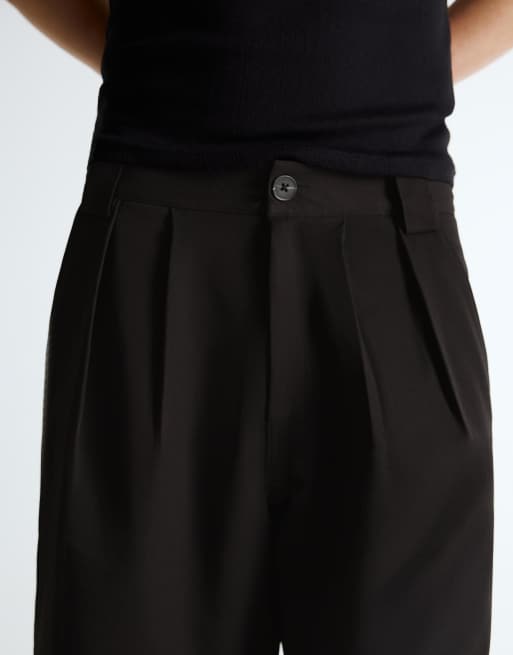 Bershka - Getailleerde geplooide bermudashort in zwart