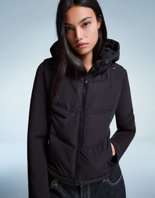 Bershka - Gewatteerd jack met contrast en neopreen-effect in zwart