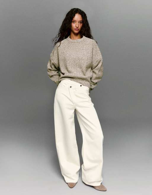 Bershka - Jeans met wijde pijpen in ecru