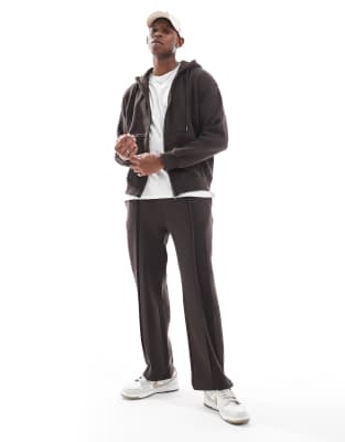 Bershka - Joggingbroek met wijde pijpen en platgestikte plooitjes in bruin