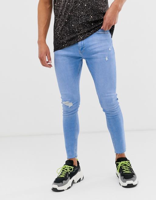 Bershka - Join Life - Superskinny jeans met kniescheuren in lichtblauw