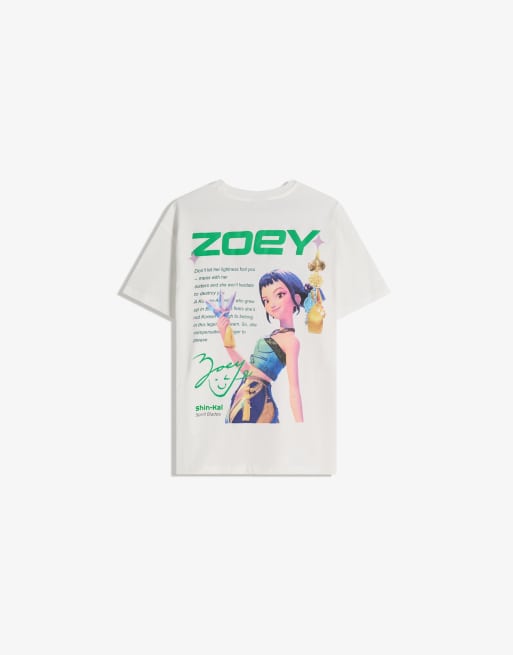 Bershka - Kpop Demon Hunters - Huntr/x - T-shirt met korte mouwen en print in wit