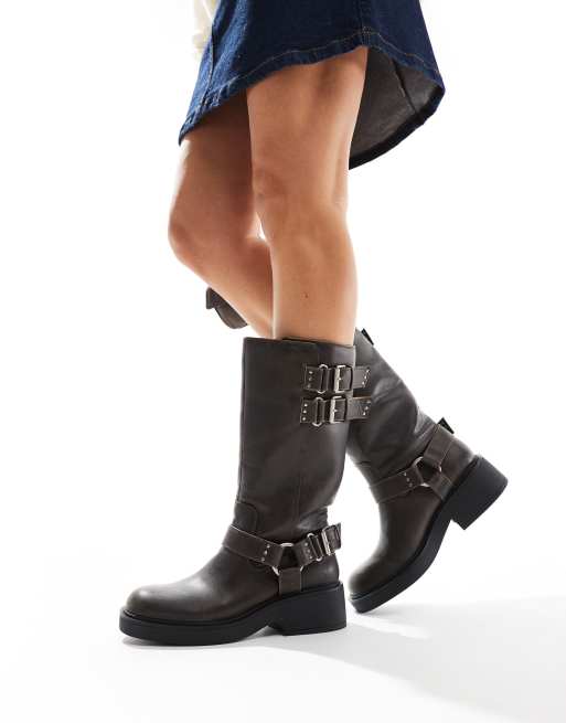 Bershka - Kuithoge laarzen met gespdetail in bruin