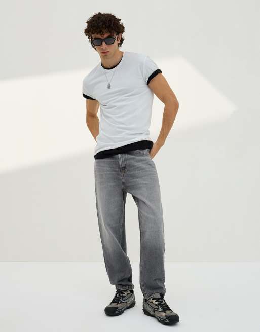 Bershka - Losvallende jeans in grijs