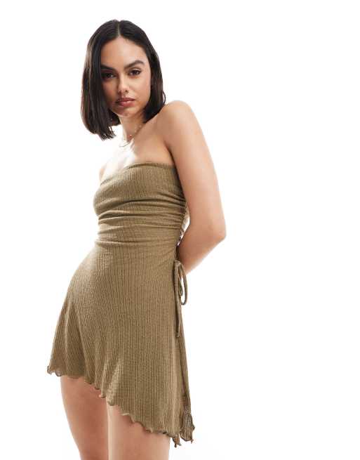 Bershka - Mini bandeau-jurk met geschulpte rand in kaki