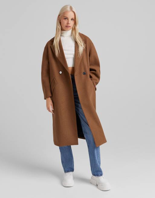 Bershka - Nette jas met lange pasvorm in bruin