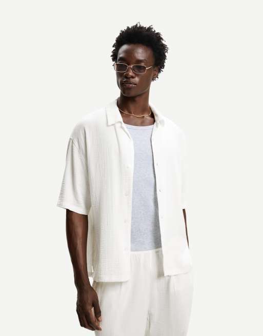 Bershka - Overhemd met textuur en korte mouwen in wit