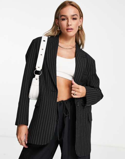 Bershka - Oversized blazer met krijtstreep in zwart
