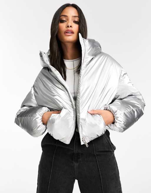 Bershka - Oversized gewatteerd jack in metallic zilver
