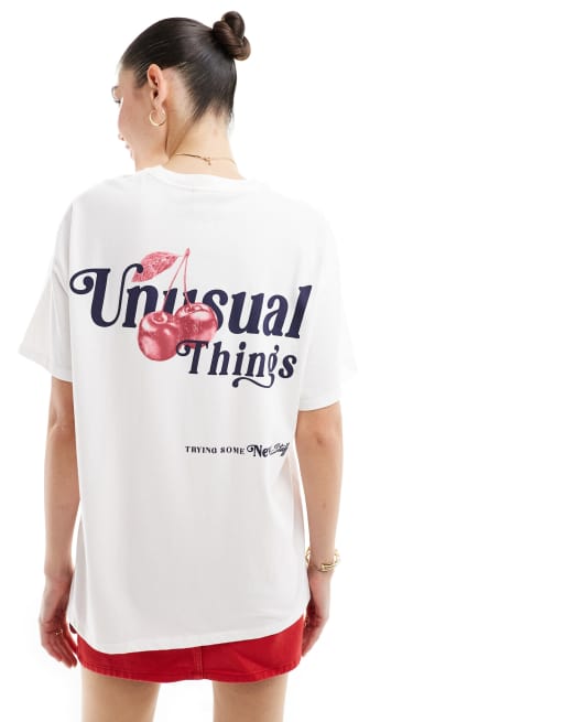 Bershka - Oversized T-shirt met kersenprint in ecru