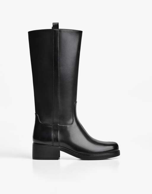 Bershka - Platte kniehoge laarzen in zwart