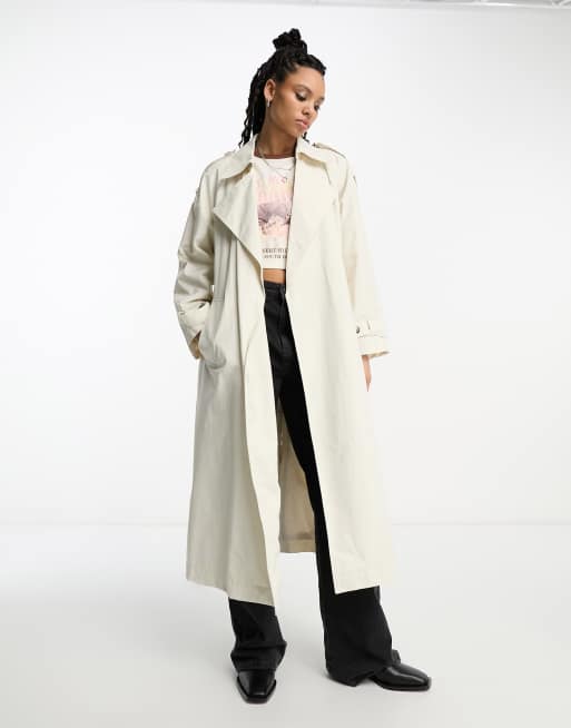 Bershka - Premium - Trenchcoat met lange pasvorm in stone
