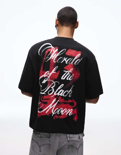 Bershka - Recht T-shirt met korte mouwen en print in zwart