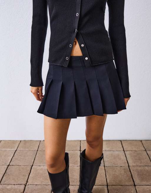 Bershka - Rechte mini-rok met plooien in zwart