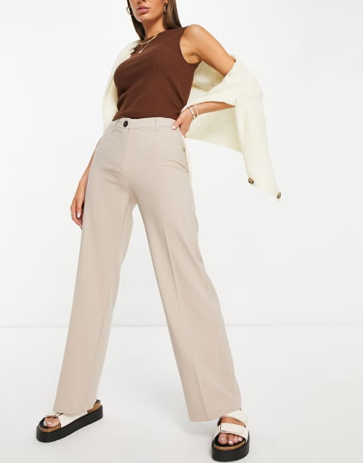 Bershka - Ruimvallende elegante dad broek met wijde pijpen in paddenstoelkleur