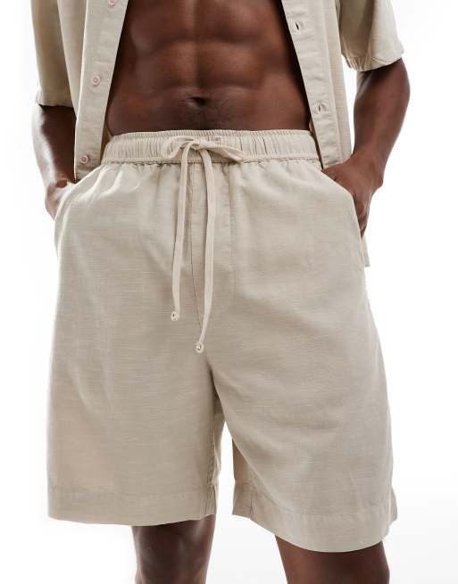Bershka - Short met linnenlook in zandkleur, deel van co-ord set