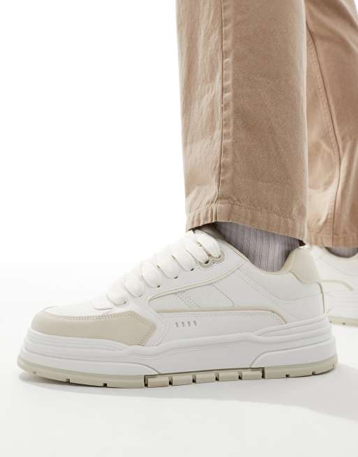 Bershka - Sneakers in ton-sur-ton wit