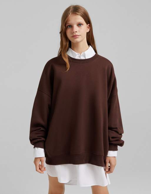 Bershka - Super oversized sweater in bruin