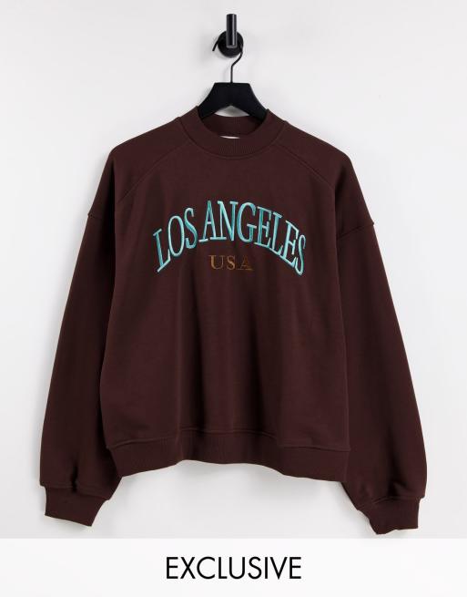 Bershka - Sweater met LA logo in bruin, deel van co-ord set
