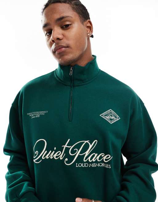 Bershka - Sweatshirt met 1/4 rits en print in groen