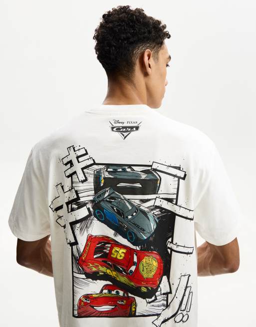 Bershka - T-shirt met autoprint en korte mouwen in wit