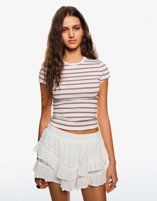 Bershka - T-shirt met korte mouwen en ronde hals in wit