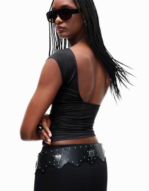 Bershka - T-shirt met korte mouwen van polyamide in zwart