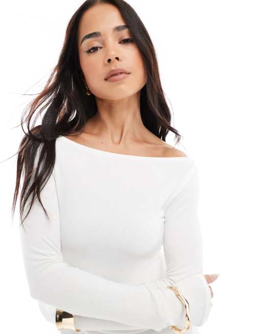 Bershka - T-shirt met lange mouwen en gerimpelde zijkant in ecru