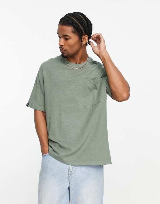 Bershka - T-shirt met textuur en zak in kaki